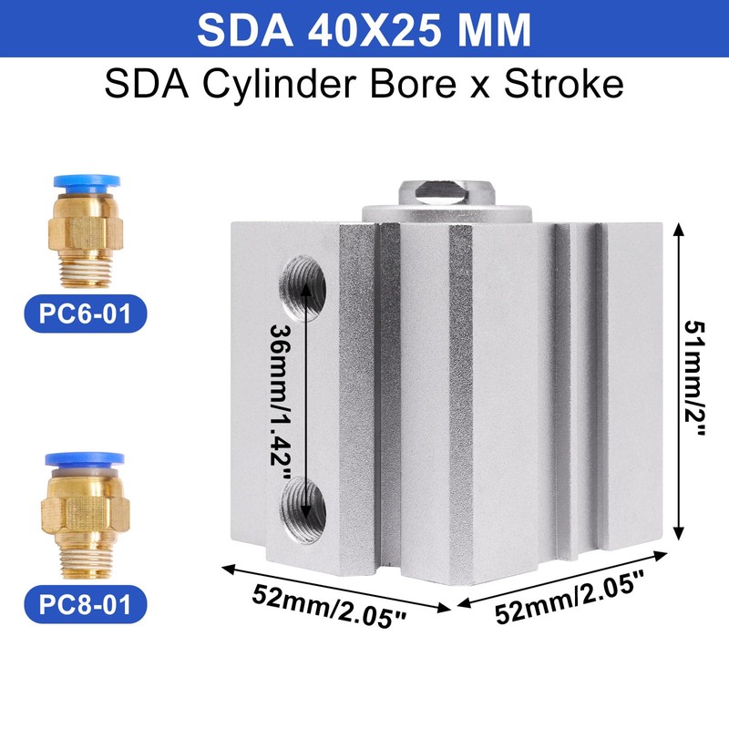 - PACKAGE CONTENT: 1Pc Pneumatic Small Thin Cylinder, 4Pcs Pneumatic Quick Fittings. Model: SDA40X25