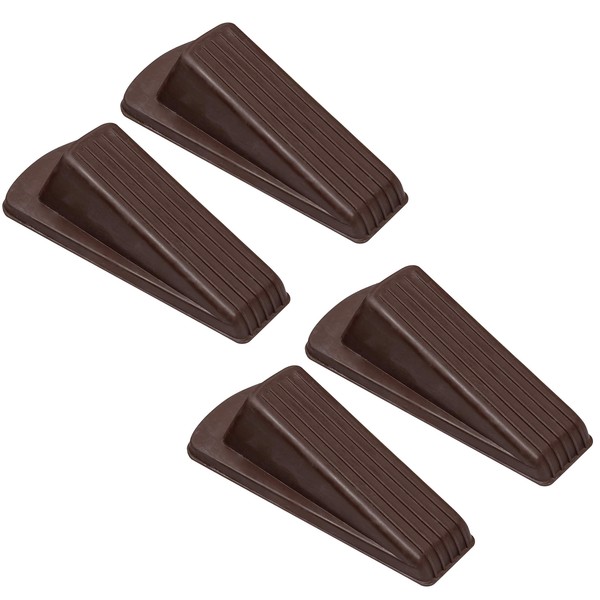 S&T INC. Heavy Duty Rubber Door Stopper for Residential and Commercial Use, Brown, 4.8 In. x 2.2 In. x 1.3 In., 4 Pack