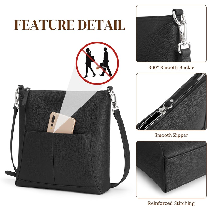- Security Design: Features a secure front zippered pocket with 4 dedicated card slots and advanced RFID-blocking technology throughout the main compartment, providing essential theft protection for your cards and valuables