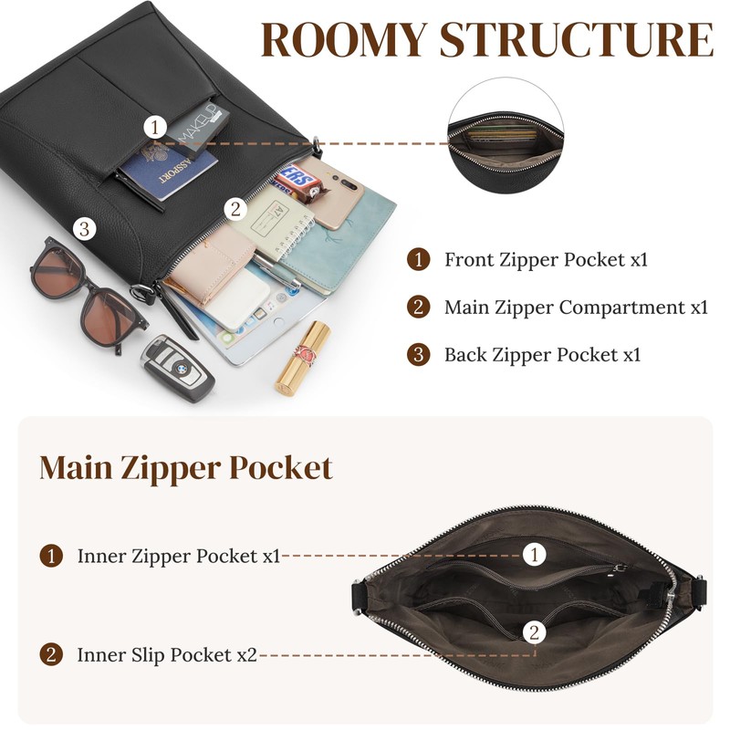 - Multi-Compartment Layout: Designed with a multi-compartment interior, including a dedicated phone slot and intelligently organized spaces, offering efficient storage to neatly hold all your daily essentials