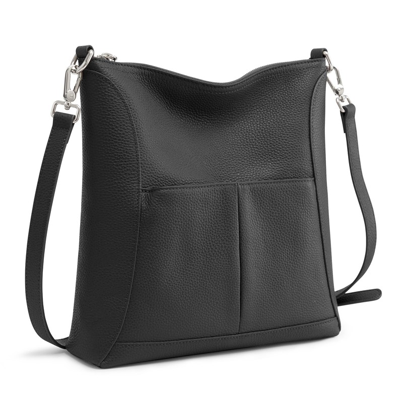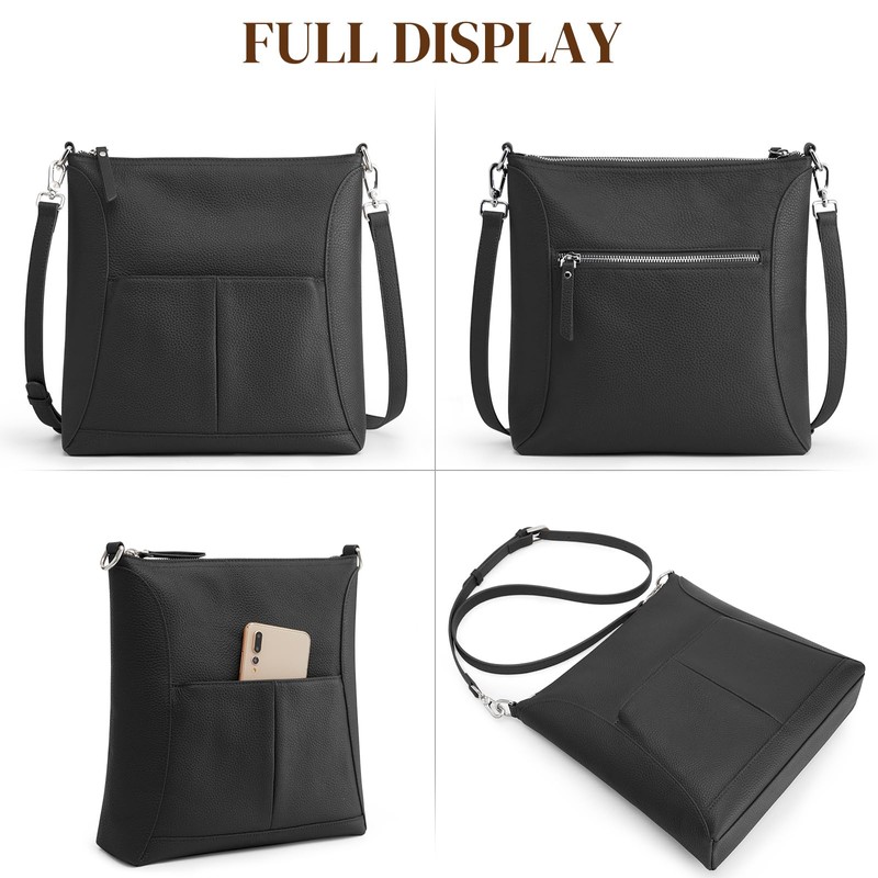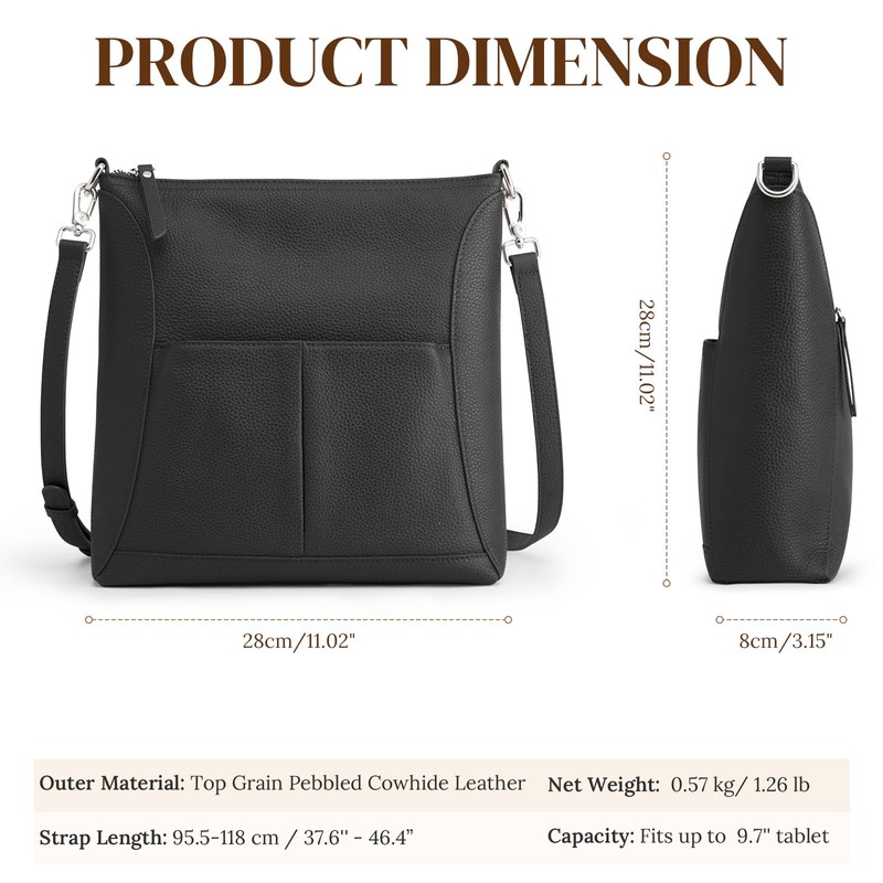- Top Grain Pebbled Cowhide Leather: Crafted from genuine leather with a stylish pebbled texture, this crossbody bag measures 11.02" L x 3.15" W x 11.02" H and weighs only 1.26 lb. Its structured design allows the bag to stand upright on its own, making it both durable and convenient