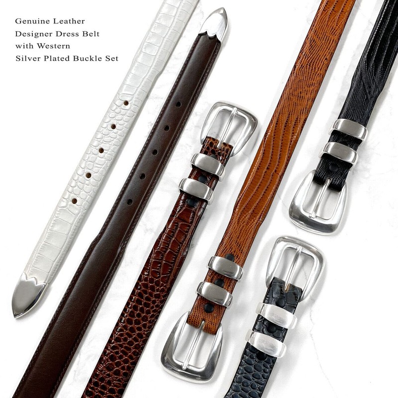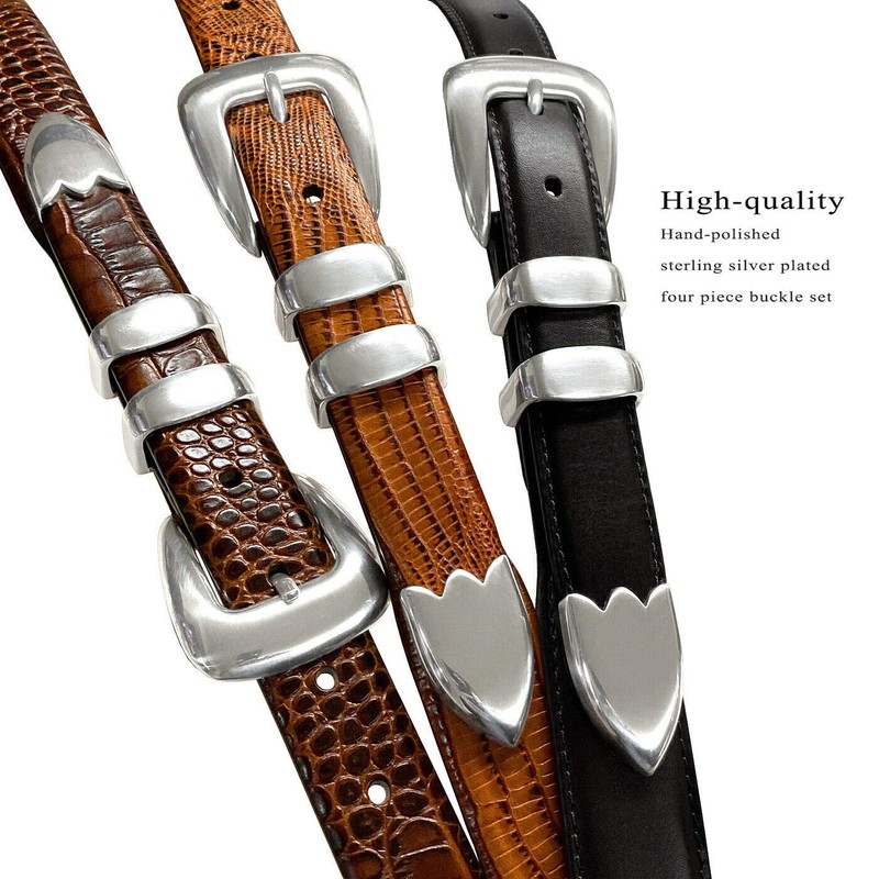 - Made from High-quality Italian Calfskin genuine leather, Hand-polished silver plated four-piece buckle set belt.