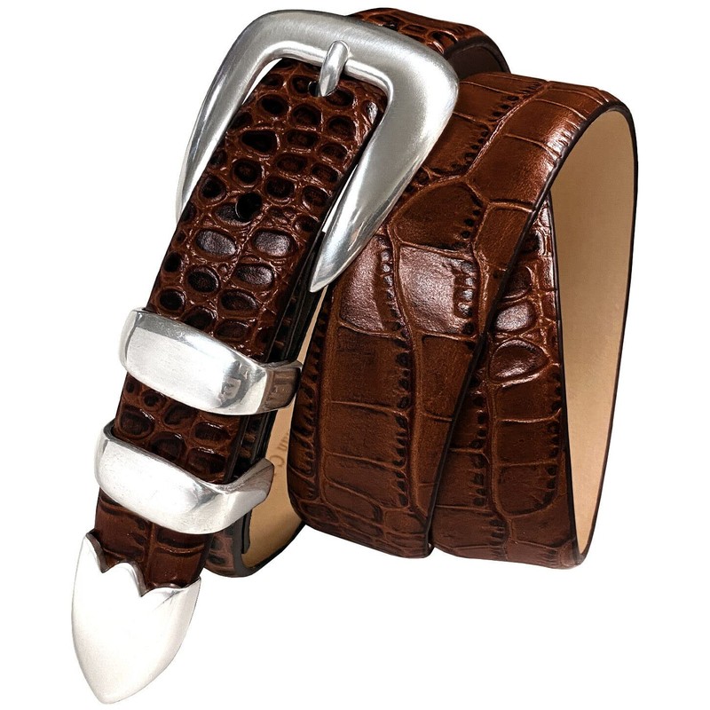 S5525 Italian Calfskin Genuine Leather Designer Dress Belt 1-1/8"(30mm) taper down to 1"(25mm) wide (Alligator Brown, 36)