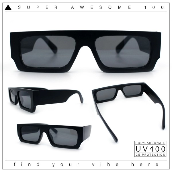 SA106 Narrow Rectangle Flat Top Horn Rim Thick Temple Plastic Sunglasses - All Black