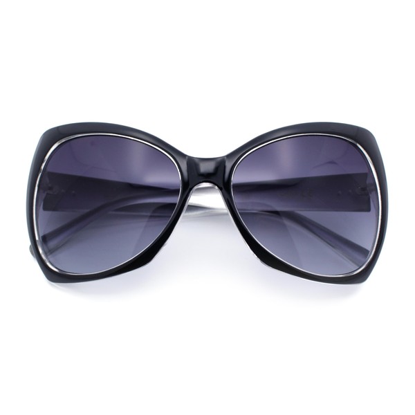 SA106 Unique Oversized Cat Eye Hybrid Butterfly Sunglasses Black