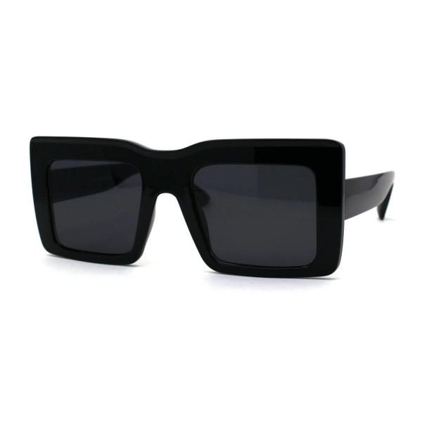 SA106 Womens Mod Thick Plastic Rectangle Sunglasses - Shiny Black