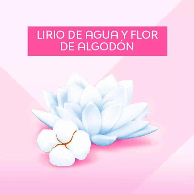 Contiene extractos naturales de lirio de agua y flor de algodón, que ofrecen una sensación de limpieza prolongada.