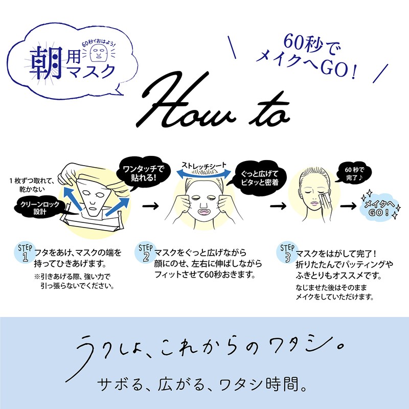 - (Face wash, skin care, and foundation are completed in 60 seconds! Just stick it to your skin that wakes to bed and sleep! Face free morning sheet mask