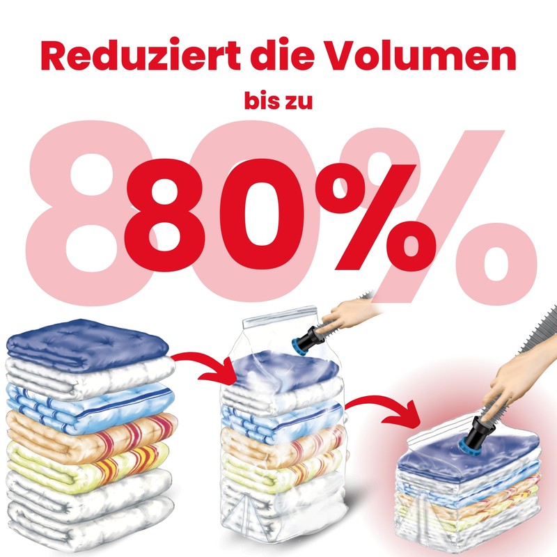 - Vacuum bags clothing. They are ideal for clothes storage and organisation and save up to 70% space in the wardrobe, in the cellar or in luggage during a trip
