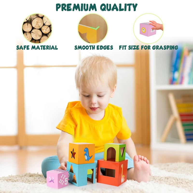 • Stacking tower baby toys: these nesting block toy sets have 6 nesting boxes, beautiful animal patterns printed on the boxes, making children visually appealing for small children. These toddler nesting block toys are a great early learning tool, suitable for toddlers aged 1 2 3+ years old.