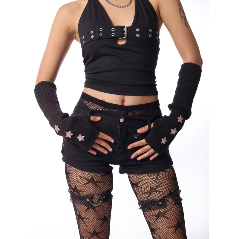 - EMO PUNK GRUNGE LONG BLACK STAR ARM WARMER FINGERLESS GLOVES: these gloves offer a simple yet sophisticated aesthetic that complements any outfit. Whether it’s for a steampunk gathering, cosplay event, or just to add a touch of elegance to your daily wear, these gloves are versatile enough to tie your look together seamlessly