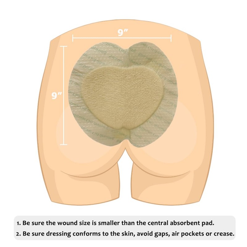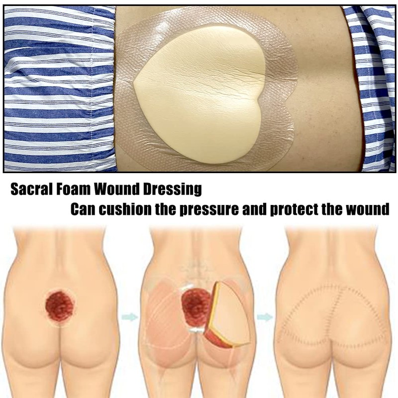 - Sacral foam wound dressing designed to post-operative wound, bed sores, skin abrasions can cushion the pressure and protect the wound.