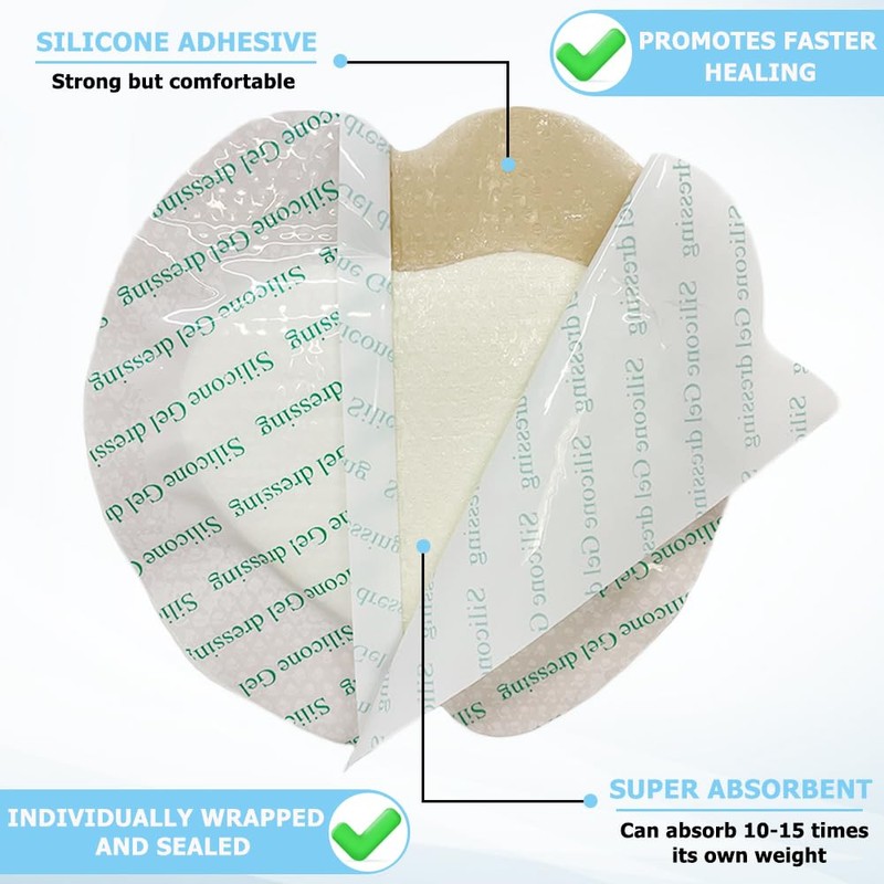 - Made of silicone + foam material, soft & comfortable. Easy to fit over a wound and does not curl, greatly minimize pain trauma and secondary injuries while changing dressings.