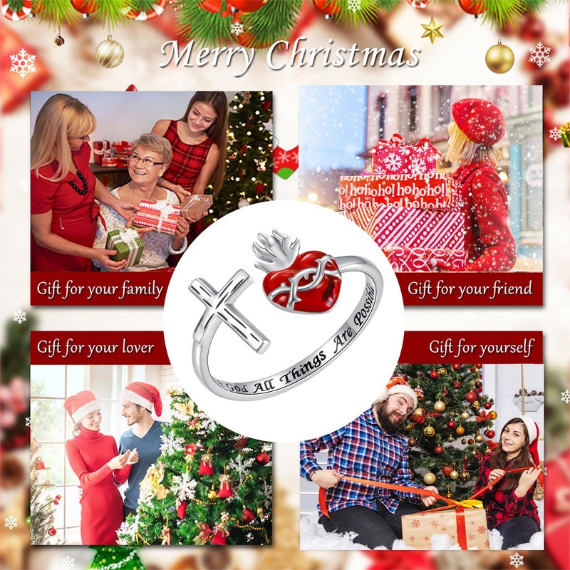 Sacred Heart of Jesus Ring 925 Sterling Silver Cross Rings God's Love Jewelry Amulet Gifts for Women (8)