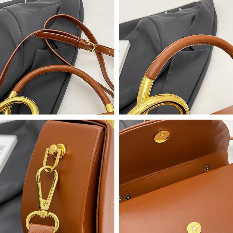 - Features: This bag features an adjustable strap made of faux leather, complemented by a golden hardware clasp, and its unique top handle shape is a standout feature; Not only is it durable, but also refined, making it the perfect match for any occasion