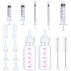 Sadnyy 17 Pieces Pet Nursing Bottle Kit Including 2 Pet Feeding Bottle, 8 Replacement Feeding Nipples, 5 Dog Nursing Syringes in 1 Ml, 5 ml and 10 Ml, 2 Cleaning Brushes for Kittens, Puppies, Rabbits