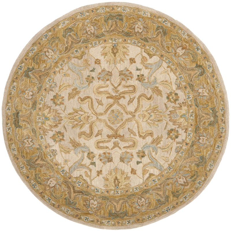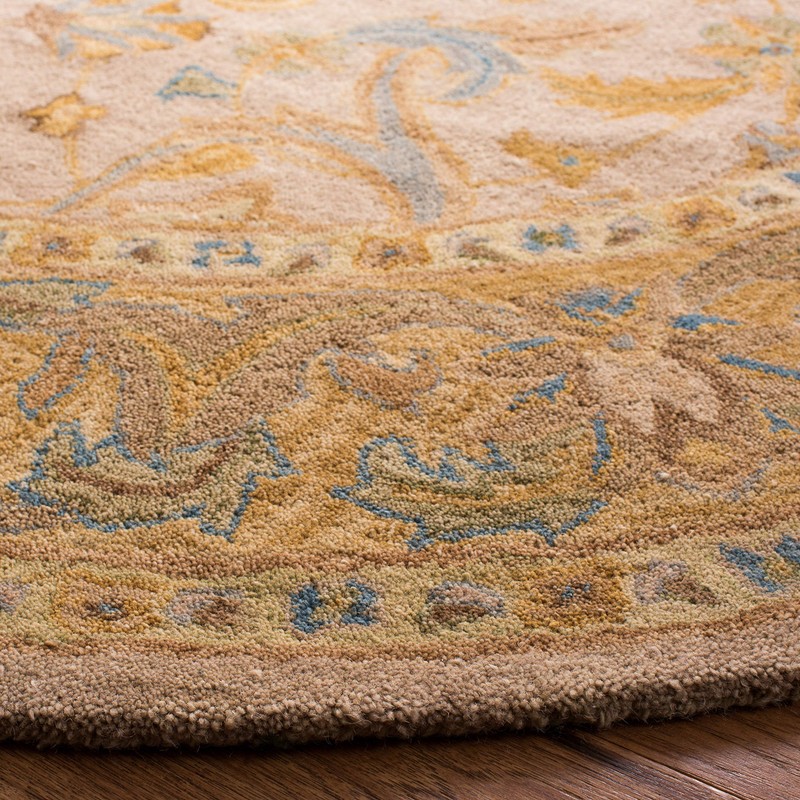 Safavieh Anatolia Collection AN576B Handmade Traditional Oriental Premium Wool Area Rug, 6' x 6' Round, Ivory / Brown