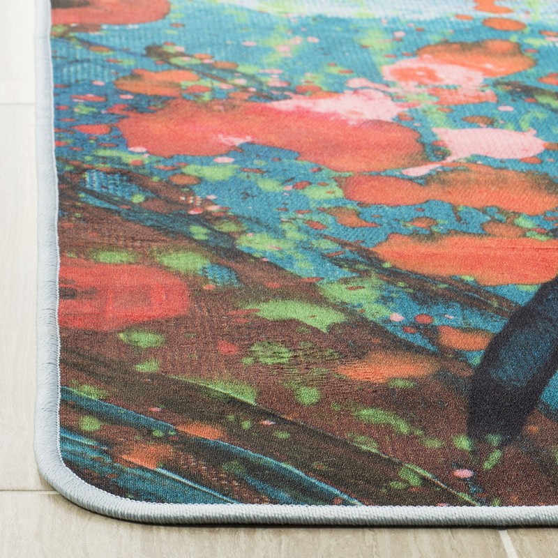 SAFAVIEH Daytona Collection Abstract Machine Washable Living Room Bedroom Dining Area Rug, 5' 1" x 7' 6", Teal/Orange