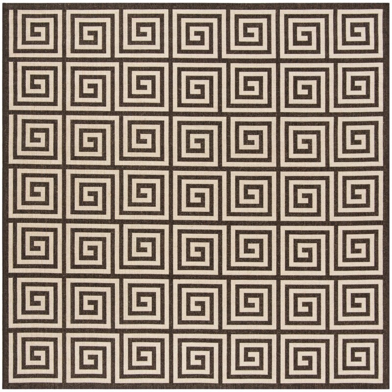 SAFAVIEH Linden Collection LND129B Greek Key Indoor/ Outdoor Non-Shedding Easy Cleaning Patio Backyard Porch Deck Mudroom Area Rug, 6'7" x 6'7" Square, Natural / Brown