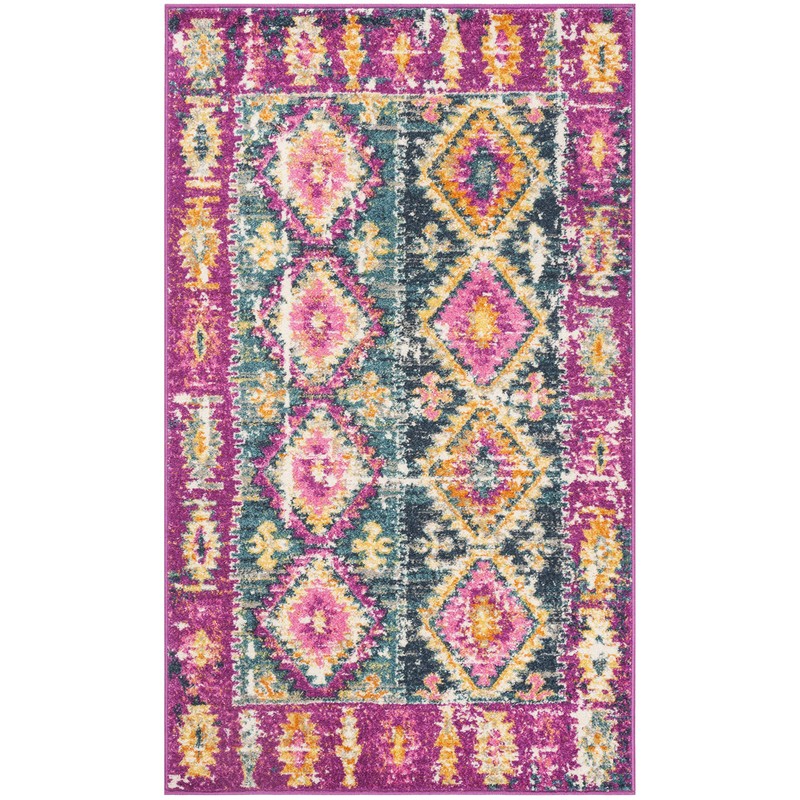 SAFAVIEH Madison Collection MAD129F Boho Chic Distressed Non-Shedding Living Room Bedroom Accent Area Rug, 4' x 6', Fuchsia / Blue