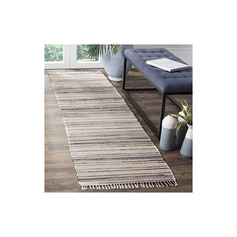 Safavieh Rag Rug Collection RAR126A Handmade Boho Stripe Cotton Runner, 2'3" x 9' , Ivory / Grey