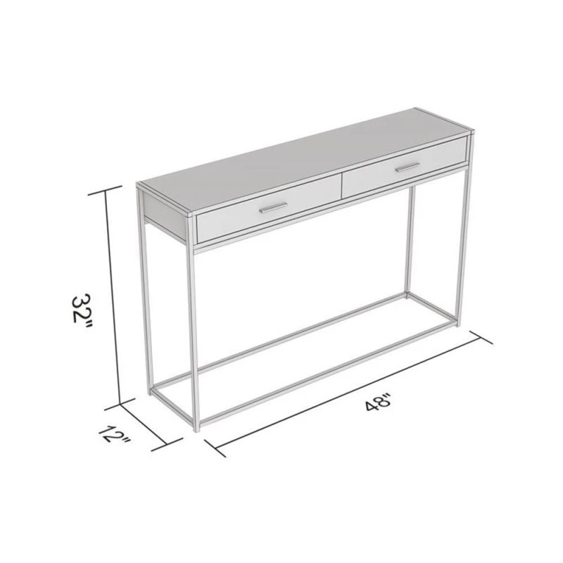 The contemporary modern design of the console table is suitable for every room of your house. It is a stylish piece to add with it's functionality and on-trend look. Simple in silhouette yet has a sturdy construction, this console table has a spacious top and 2 spacious drawers.