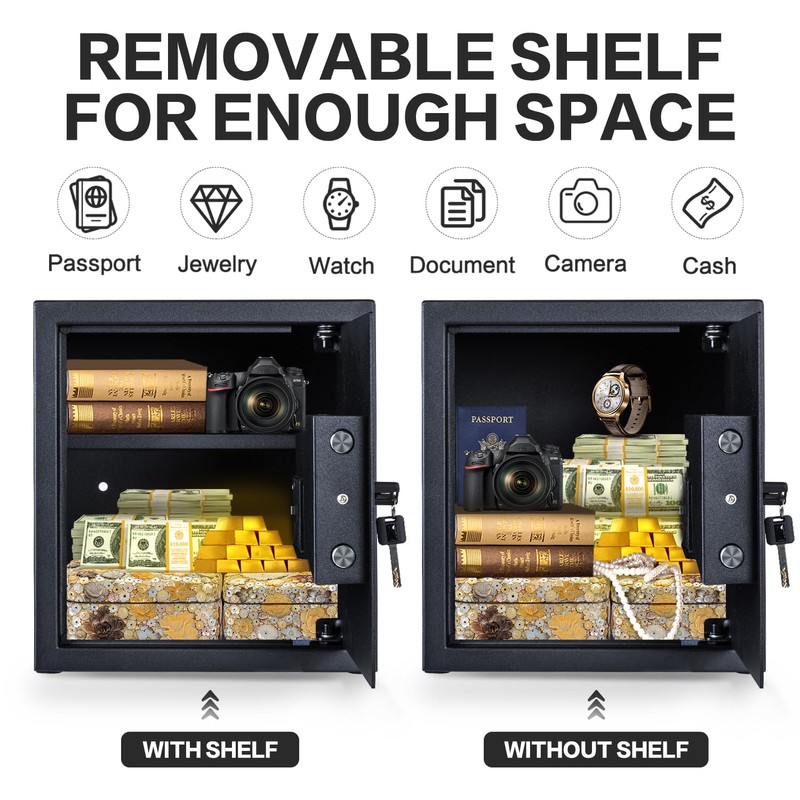 Safe Box, 1.4 Cubic Feet Home Safe, Electronic Digital Keypad, Alarm System, W/Fireproof Bag, Removable Shelf, Money Box for Money Documents, Home Use,12.99"D x 12.99"W x 14.17"H
