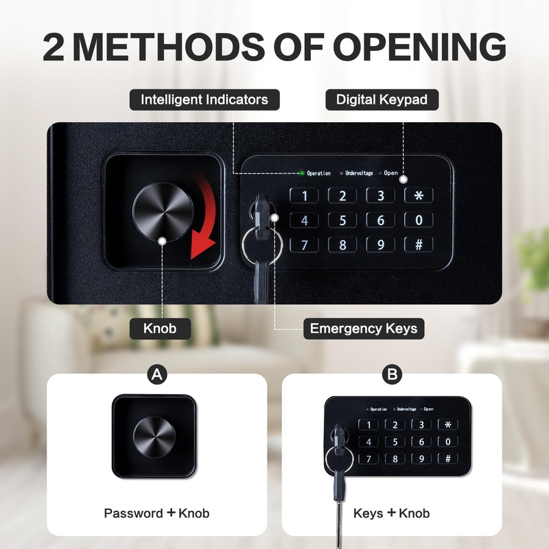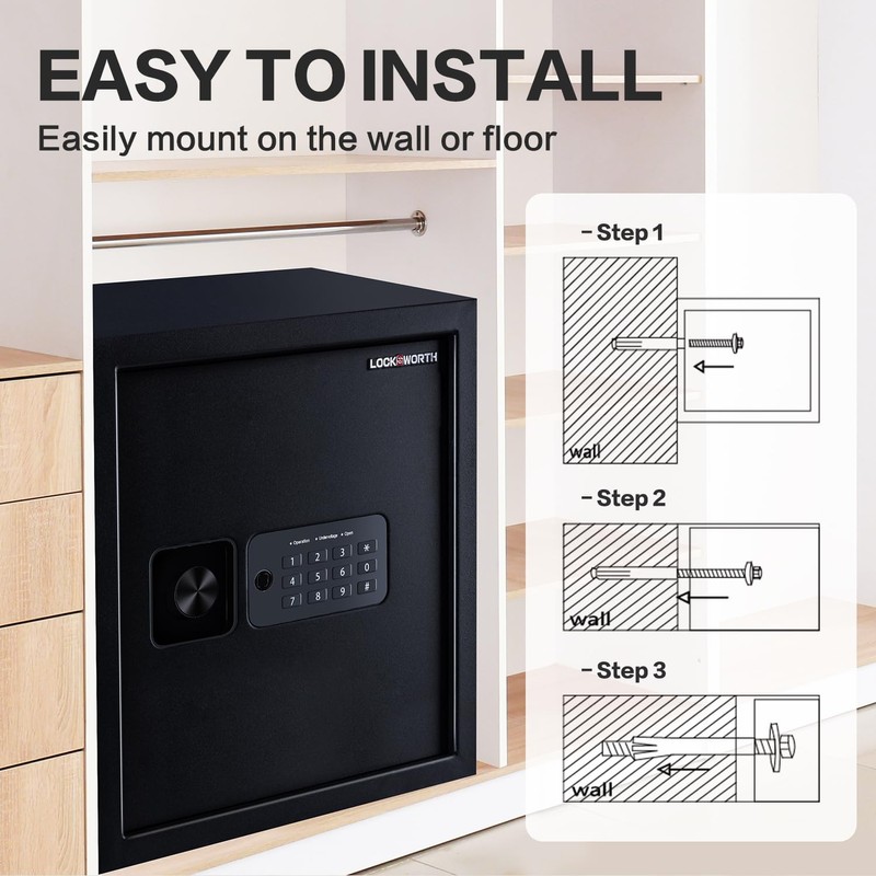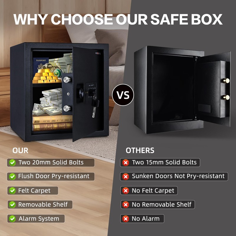 - The safe box is constructed from solid steel throughout, enhancing its resistance to prying. This safe for home is precision-cut with laser technology, ensuring seamless joints without welds and featuring diamond-like anti-pry design