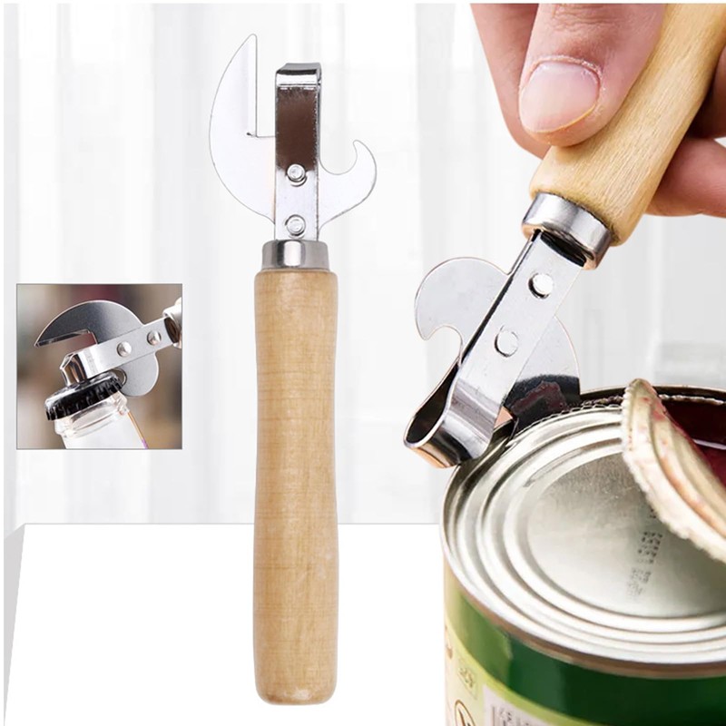 Safe Manual Metal Can Opener Side Cut Tin Lid Remover Steel Professional Ergonomic Can Opener with Wood Handle Kitchen Tools,Safe can Opener,can Opener Manual,Professional tin Opener