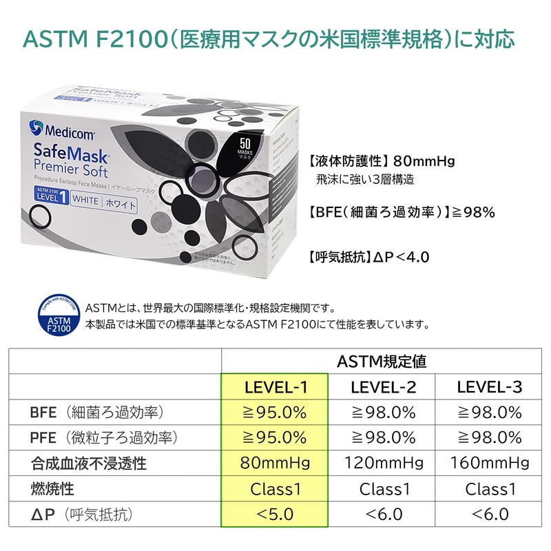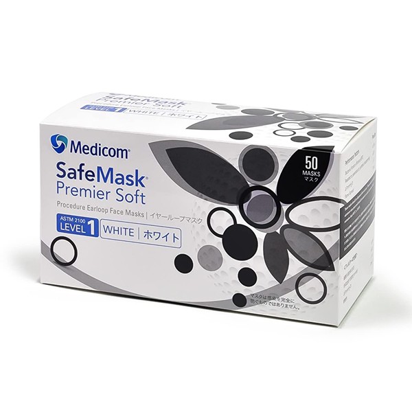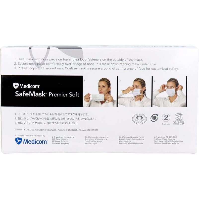 Safe Mask, Premier Soft, 3-Layer, Regular Size, White, 50 Pieces