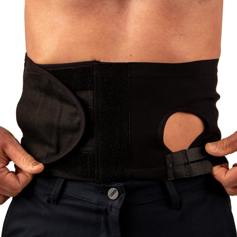 - HERNIA SUPPORT BELT - Our belt for hernia abdominal women and men and is available without a pouch opening for hernia protection. The Colostomy hernia belt features an internal anti-slip pad to secure the area around the pouch.
