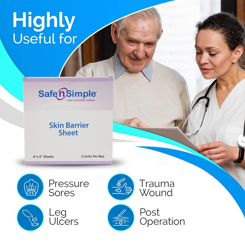 Safe n' Simple Skin Barrier Sheets - 4" x 4" Individually Wrapped Packets - Hydrocolloid Medical Ostomy Barrier Sheet - Skin Adhesive Sheets for Ostomy Protection