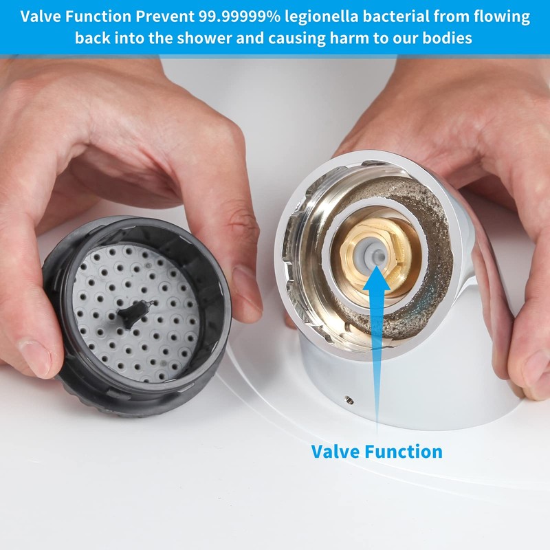 - Valve Design :harmful containmants from flowing back into the shower and causing harm to our bodies