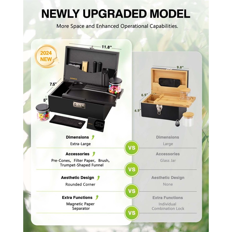 SafeDelux Extra Large Bamboo Stash Box with Combination Lock, Smell Proof Tube & Jar, Storage Containers with Brush & Tray, Great Home Decor & Father’s Day Gift