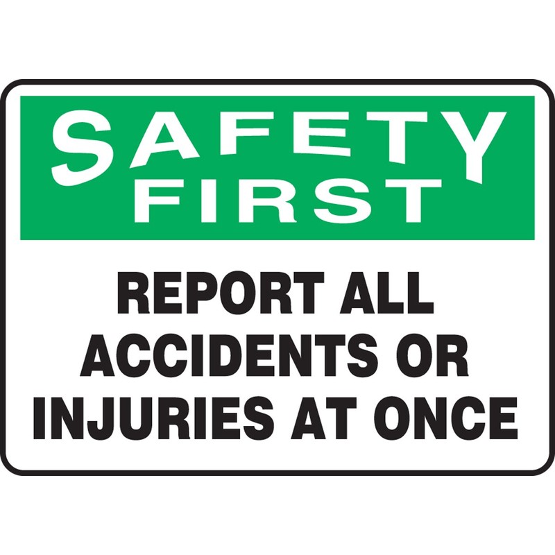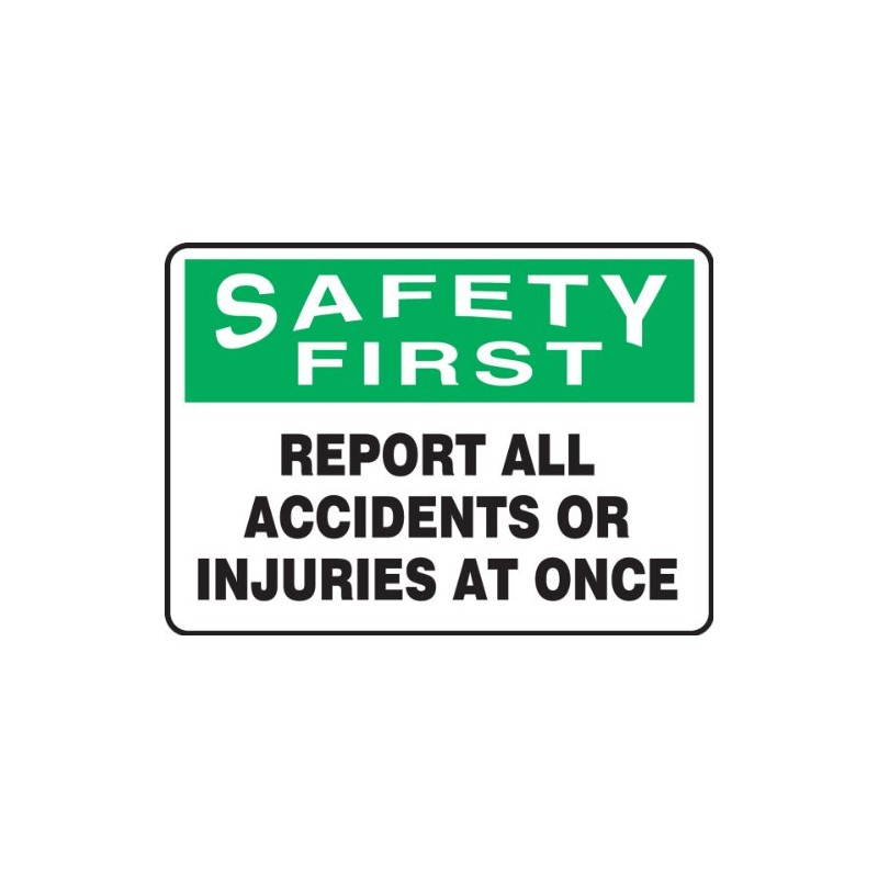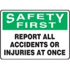 SAFETY FIRST REPORT ALL ACCIDENTS OR INJURIES AT ONCE 7" x 10" Plastic Sign