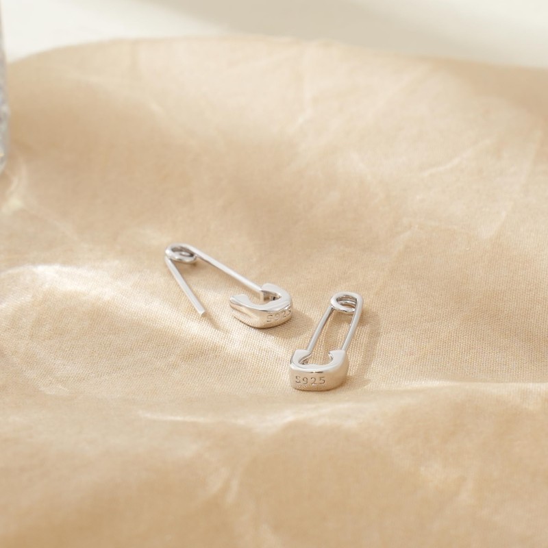- ➷ SIZE & MATERIAL ♥ Safety pin earrings length is approx. 0.82'' (20mm);wide is approx. 0.28''(7mm);tickness is approx. 3mm;*** Hypoallergenic platinum plated sterling silver, plating thickness is double the industry standard,nickel-free and lead-free, safe for everyone even for those with sensitive skin.