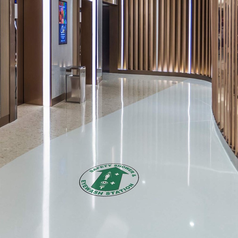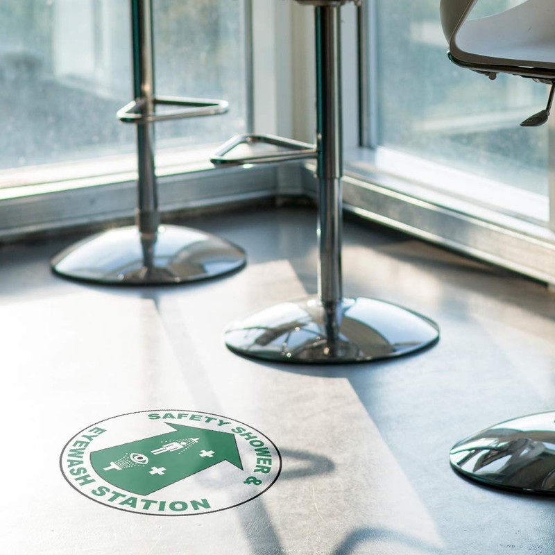 Get your floor signage right and visible with our Safety Shower Eyewash Station signage! Our Safety Shower Eyewash Station Signs floor sticker is made of high-quality resistant vinyl. The floor stickers Safety Shower Station have a non-slip texture for complete safety when people walk on them.