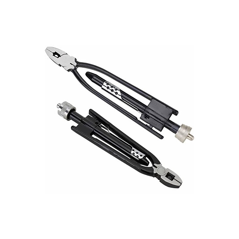 Precision-made safety wire pliers for quick wiring. Clamp jaws over wire end, pull knurled twister. Positive locking spring loaded handles. Includes both 6 inch and 9 inch pliers.