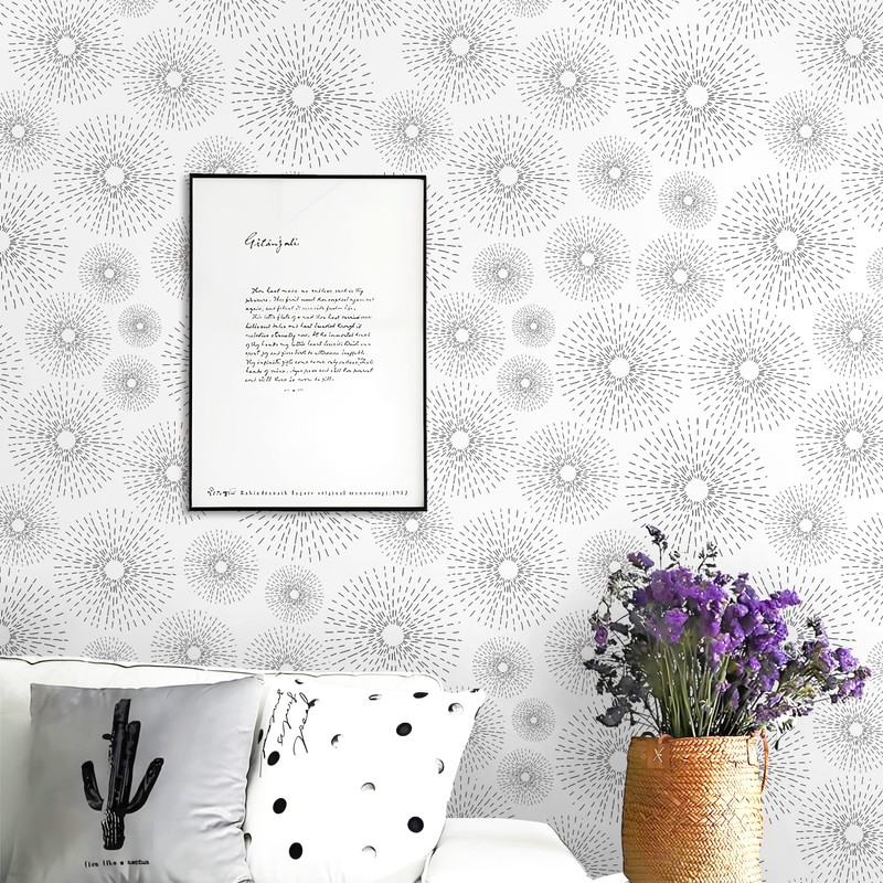 - Design: The wallpaper is themed around classic white and black. The black hand-painted lines form a beautiful circle, like fireworks blooming, delicately outlined by our designer. It is simple, elegant, versatile and creative