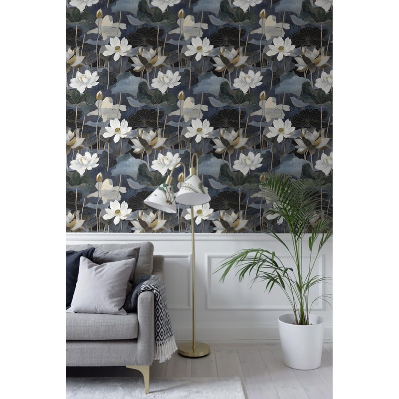 - Exquisite design: This black-toned lotus wallpaper features white lotuses in full bloom, adorned with leaves of varying dark hues. The lotus flowers and leaves are depicted so vividly that they seem lifelike, adding a unique and exquisite aesthetic charm to your room