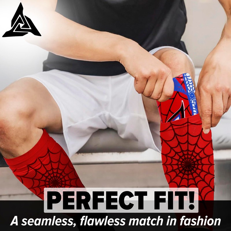 SAGA SPORTS Unbreakable Spider shin Guards Soccer Kids Includes Sleeves Soccer Shin Guards Youth, & Adults | Vibrant Colors, Lightweight & Durable shin Guards Youth | Ideal Gift (Mini)
