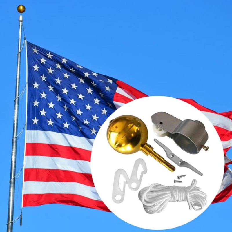 • 【Complete Materials】The flagpole replacement parts include 1 Flagpole Top Ball, 2 Flag Clamp Hooks, 1 Flagpole Cleat, 2 Screws, 1 Flagpole Truck, and 1 Flagpole Rope.