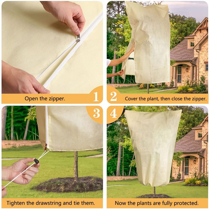 - [Einfach zu bedienen]: Die Pflanzenabdeckung kommt mit einem seitlichen Reißverschluss, öffnen Sie einfach die Abdeckung, um Ihre Pflanzen abzudecken, und einen Kordelzug zum Festziehen, Sie können den Boden leicht festziehen. Der seitliche Reißverschluss macht es einfach, Ihre Pflanzen im Winter im Auge zu behalten