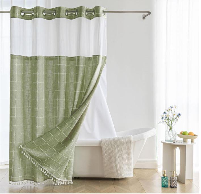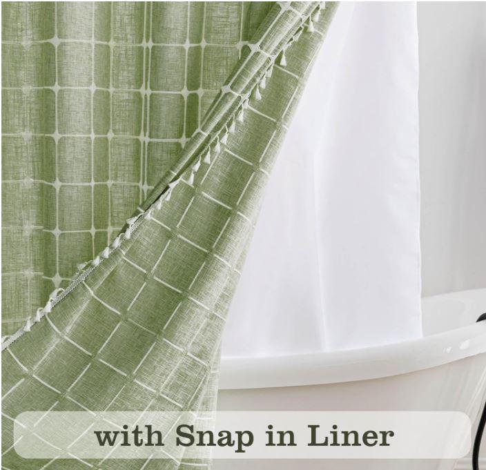 - [Snap-in Liner]: The shower curtain with snap-in liner not only adds an extra layer of water protection but also allows for easy detachment, facilitating effortless cleaning and replacement.