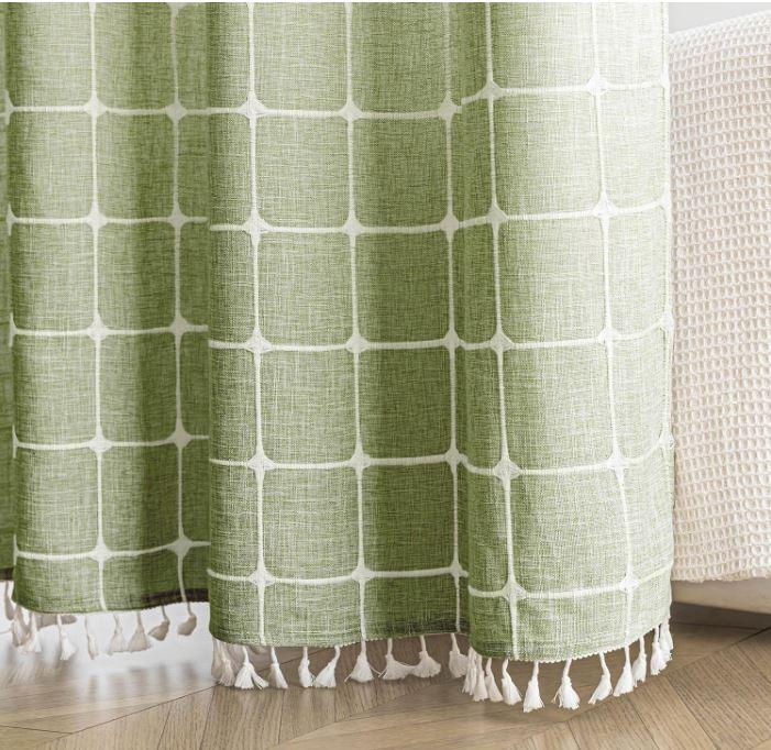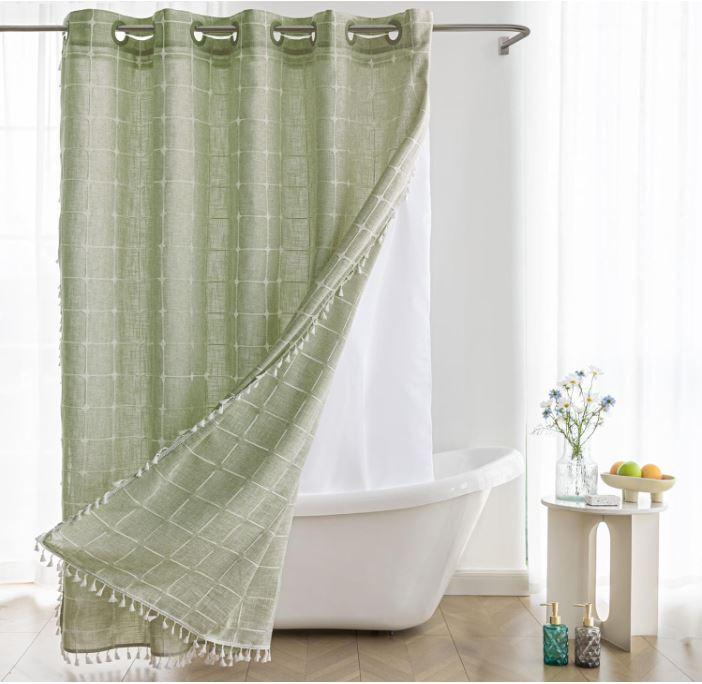 - [Boho Farmhouse Style]: The fabric shower curtain with tassels features a captivating 3D embroidery stripe design and charming tassels on three sides. The end result is a shower curtain that exudes elegance and country charm, elevating the bathroom decor to new heights.