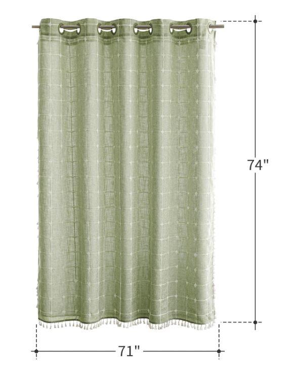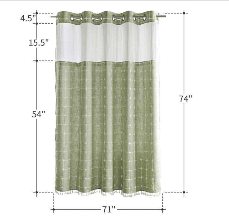 - [Dimensions]:71Wx74H inches(The tassel length is not included); The tassel brings 1.4 inches of additional length. Package includes 1 white shower curtain and 1 fabric snap in liner.
