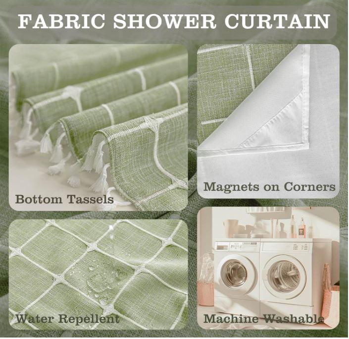 - [Premium Fabric]: Crafted from high-quality fabric, fabric shower curtain boasts durability and a luxurious touch. Its smooth texture enhances the overall showering experience.