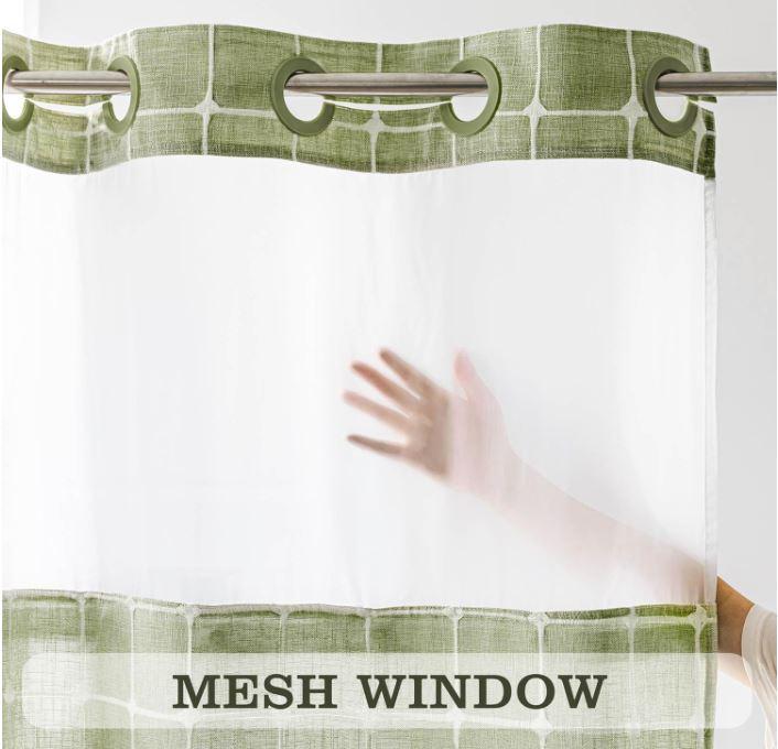 Sage Green Farmhouse Shower Curtain with Snap-in Liner, No Hooks Needed,with Window, with Magnets,with Tassels,Water Repellent&Machine Washable,71x74Inch - Color: Grey-74L*71W