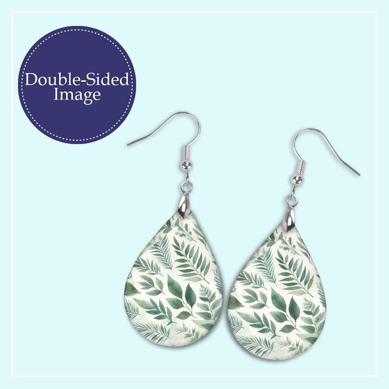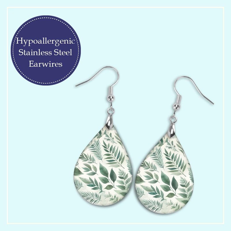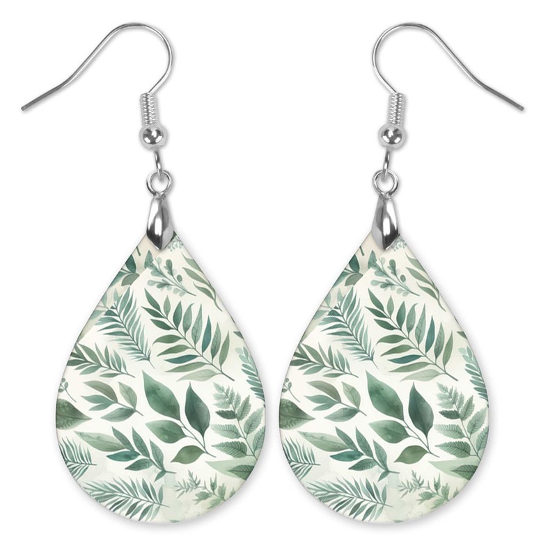 - Nature-inspired botanical print: These earrings showcase a delicate sage green leaf pattern on a cream background, adding a fresh and natural touch to any outfit.