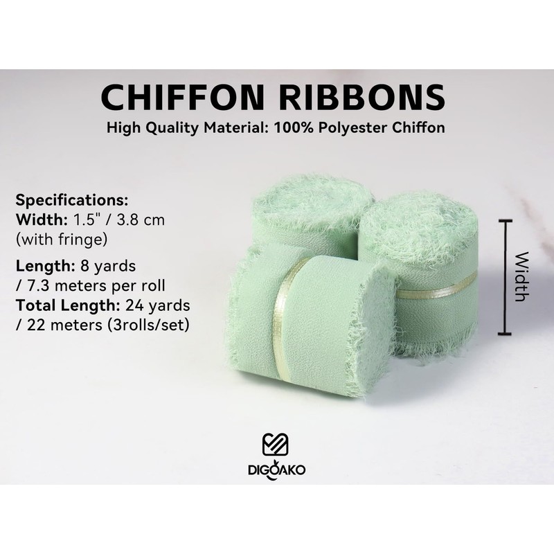 Sage Green Silk Ribbon 1.5" x 24 Yards | Greenery Chiffon for Rustic Wedding Bouquets, Boho Decor, Gift Wrapping & Eco Crafts